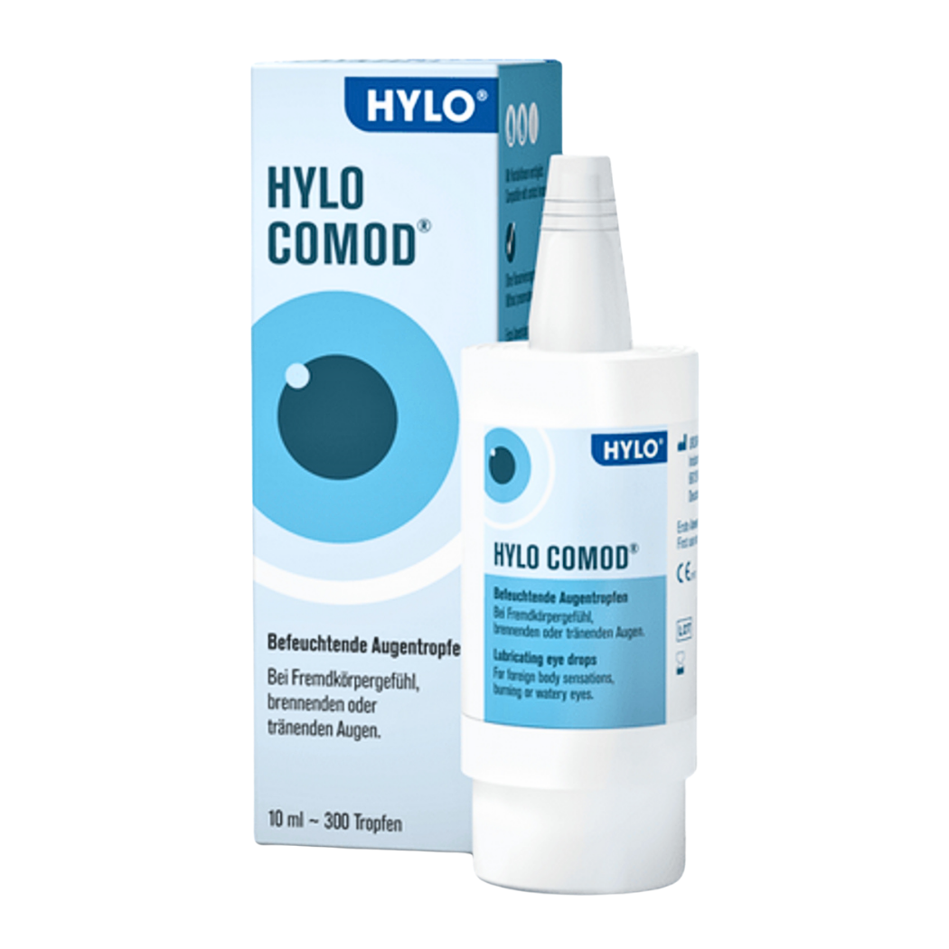 Hylo Comod 眼藥水採用無防腐劑配方,專為乾眼症或眼部不適提供持久且有效的保濕效果。其專利「COMOD」瓶設計可確保每次使用劑量精準,並在開瓶後保持無菌性長達 6 個月。